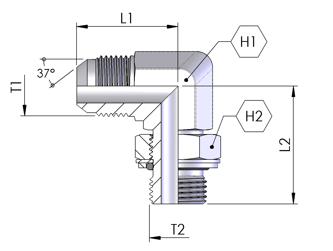 JIC 37° FLARE MALE X BSP ADJUSTABLE STUD 90° ELBOW